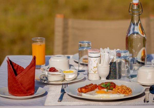 Start your day with a sumptuous breakfast as the sun bathes the savannah in golden light. As the day unfolds, enjoy a leisurely lunch accompanied by the gentle rustling of the grasslands. In the evening, relish a candlelit dinner under the starlit African sky, creating a romantic ambiance that’s second to none.