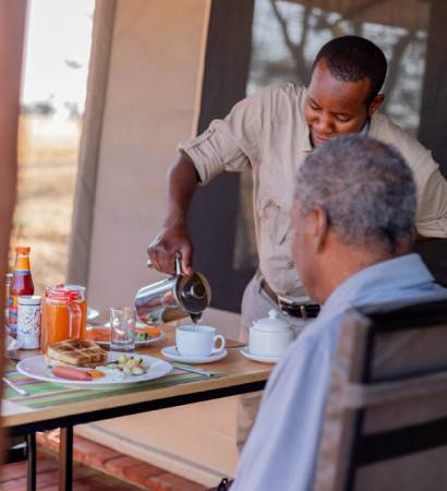 Our dining area is a testament to eco-luxury, designed to provide you with a comfortable and immersive dining experience. The open-air setup allows you to enjoy your meals while being serenaded by the sounds of nature. Whether you’re seated with friends, family, or fellow travelers, the shared experience of food and conversation deepens your connection to the Serengeti.