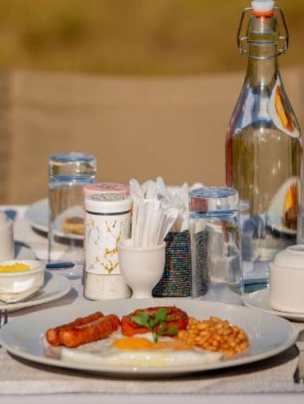 Start your day with a sumptuous breakfast as the sun bathes the savannah in golden light. As the day unfolds, enjoy a leisurely lunch accompanied by the gentle rustling of the grasslands. In the evening, relish a candlelit dinner under the starlit African sky, creating a romantic ambiance that’s second to none.